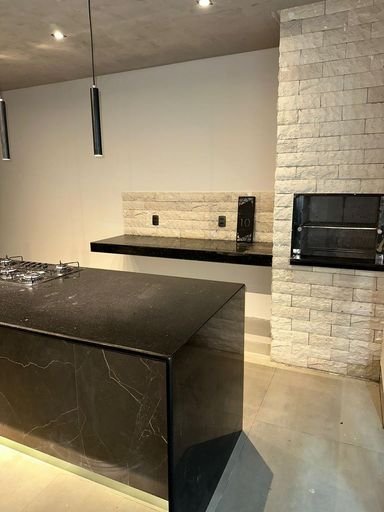 🔹️Churrasqueira revestida em Travertino RockFace, um toque de elegância natural