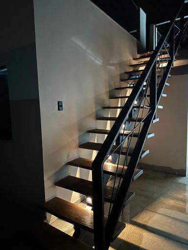 🔹️Escada moderna em ferro e madeira, assinando o estilo arquitetônico